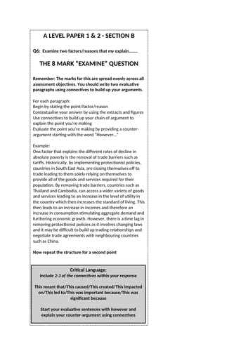 Edexcel A Level Economics 8 Mark Structure Strip Teaching Resources