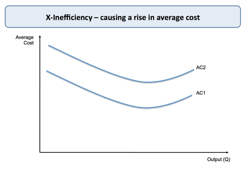 X-efficiency describes a companys inability to get the maximum output for its inputs due to a lack of competitive pressure. Subsequently question is what does X mean in economics. X-inefficiency happens when a lack of effective real competition in a market or industry means that average costs are higher than they would be with competition.